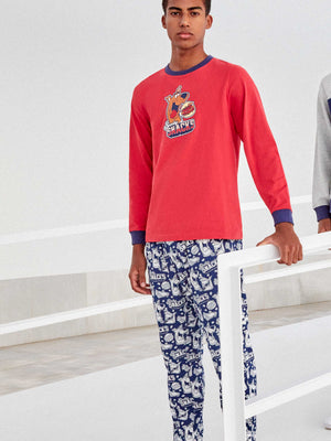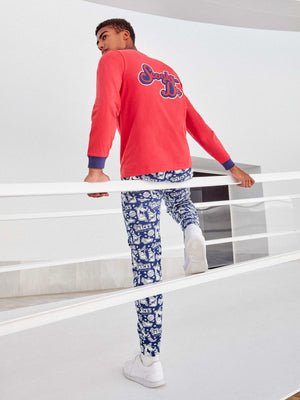 Il pigiama simpatico con Scooby Doo, perfetto per l'uomo che ama unire comfort e un tocco di ironia anche nei momenti di relax. La maglia a manica lunga e scollo rotondo ha un fondo di colore rosso con l'immagine del personaggio, rifinito con bordi e polsini blu che ben richiamano il pantalone coordinato con stampe di Scooby Doo. Perfetto per accompagnare le serate in casa nei giorni con temperature più miti.