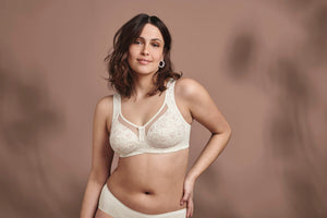 Reggiseno Clara Art, comfort senza ferretto e coppe tripartite con inserti semi trasparenti sul décolleté. Inoltre le sue coppe donano un aspetto affascinante con motivi e grafiche in stile moderno. Sostegno eccezionale con una vestibilità impeccabile, grazie alla sua struttura e alla fascia sottoseno anatomica. Un tocco di eleganza discreta per questo reggiseno, mentre la costruzione senza ferretto assicura libertà di movimento e comfort prolungato durante tutto il giorno. Ideale per chi ricerca praticità senza compromessi sulla qualità, anche nelle taglie più generose. Dotato di spalline comfort di alleggerimento.
